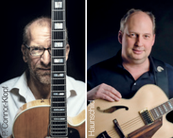 Mehr als 10 Jahre kannten sich der Bremerhavener Jazzgitarrist Jörg Seidel und der aus Köln stammende Gitarrist Frank Haunschild, bevor sie dann endlich ins Studio gingen, um eine Duo-CD aufzunehmen, die im Nachgang wunderbare Kritiken erhalten hat. Das ist auch schon wieder mehr als 10 Jahre her und noch immer sind die beiden Musiker gemeinsam unterwegs, um ihre unterschiedlichen Stile zu vereinen. Seidel, einer der meistbeschäftigten Musiker des swingenden Jazz, trifft auf einen der europaweit herausragenden und wichtigsten Fusion-Jazz-Vertreter. Frank Haunschild, dessen Lehrbuch über die Jazztheorie schon seit vielen Jahren Standardwerk in der Jazzausbildung ist, hat sich mit seinem virtuosen Spiel international schon vor Jahrzehnten einen Namen gemacht und seinen hervorragenden Ruf im gemeinsamen Spiel mit zahlreichen Jazzgrößen immer wieder unter Beweis gestellt. Im gemeinsamen Spiel unternehmen Frank Haunschild und Jörg Seidel einen sehr unterhaltsamen Streifzug durch die Geschichte der Gitarrenmusik – neben schönen Eigenkompositionen spielen beide auch Klassiker des Jazz, in denen sie ihrer überbordenden Spielfreude und ihrem Humor freien Lauf lassen. Launige und amüsante Moderationen machen jedes Konzert zu einem kurzweiligen Ereignis.